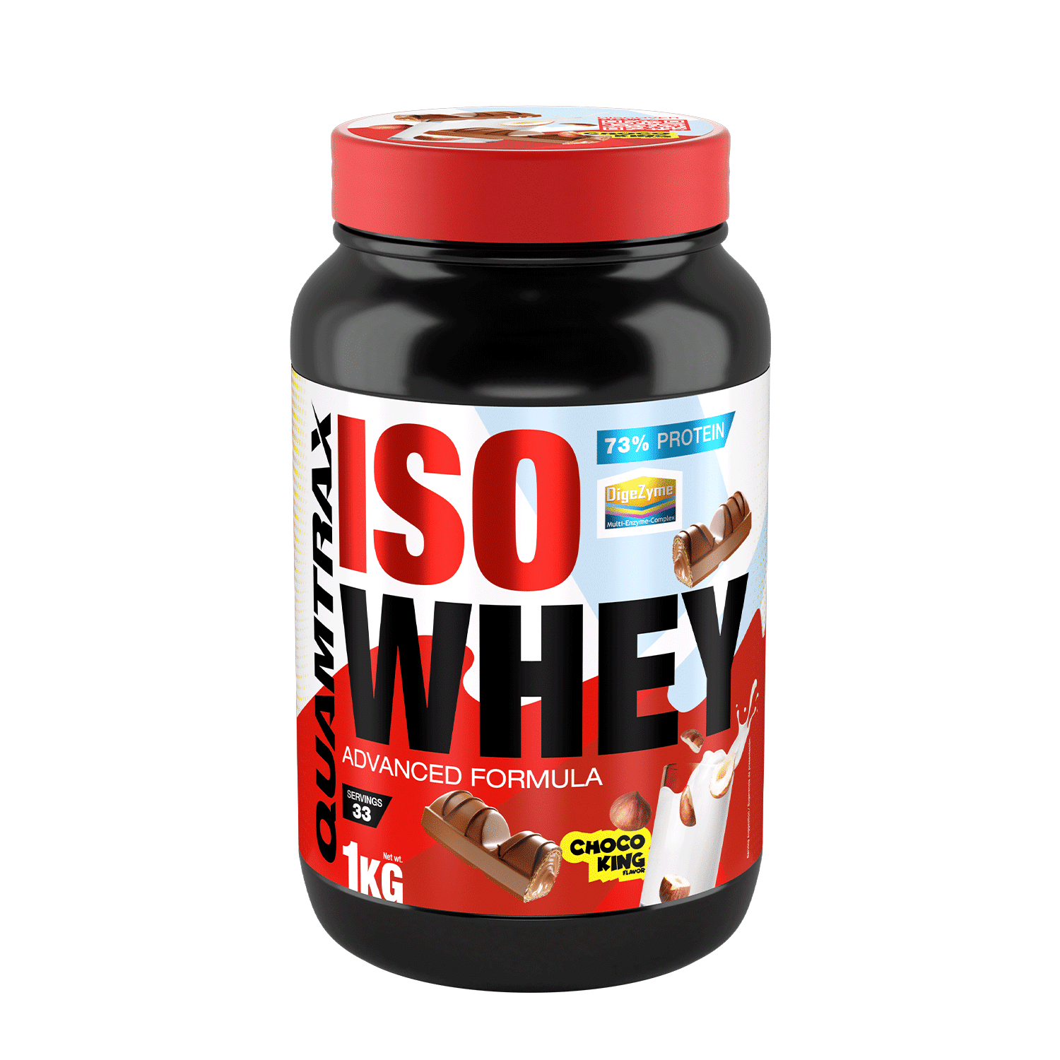 ¿Buscas una proteína que potencie tus entrenamientos y te ayude a alcanzar tus objetivos? Entonces no busques más: el Iso Whey 1 kg. Choco King de Quamtrax es la solución perfecta para ti. Este suplemento de proteínas está diseñado para los amantes del fitness que saben que cada gramo cuenta en su camino hacia la musculación y la definición.