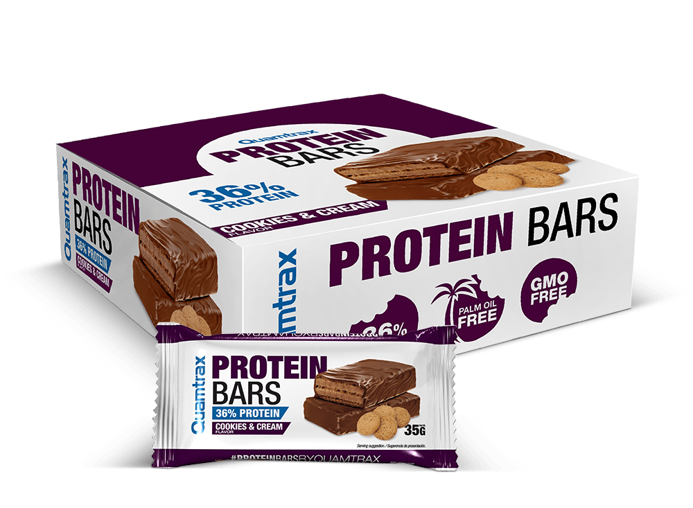 Descubre las Protein Bars Cookies & Cream 35 gr. x 32 uds. de Quamtrax, la opción perfecta para aquellos que buscan una merienda deliciosa y rica en proteínas sin renunciar al sabor. Estas barritas no solo satisfacen ese antojo de algo dulce, sino que, además, son el aliado ideal para tu rutina de entrenamiento. Ya sea que estés en la fase de definición o buscando ganar volumen muscular, estas barritas te ayudarán a alcanzar tus objetivos de fitness.